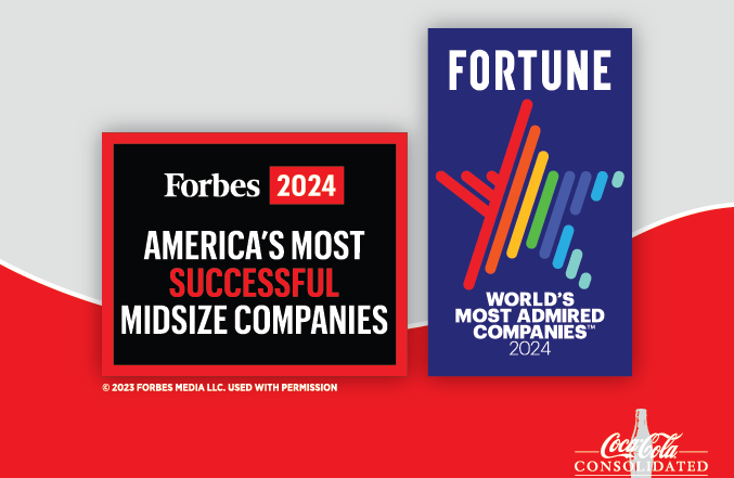 Coca-Cola Consolidated, the nation’s largest Coca-Cola bottler, is honored to be named to the 2024 “Most Admired Companies” list by Fortune and 2024 “Best Midsize Companies” list by Forbes.